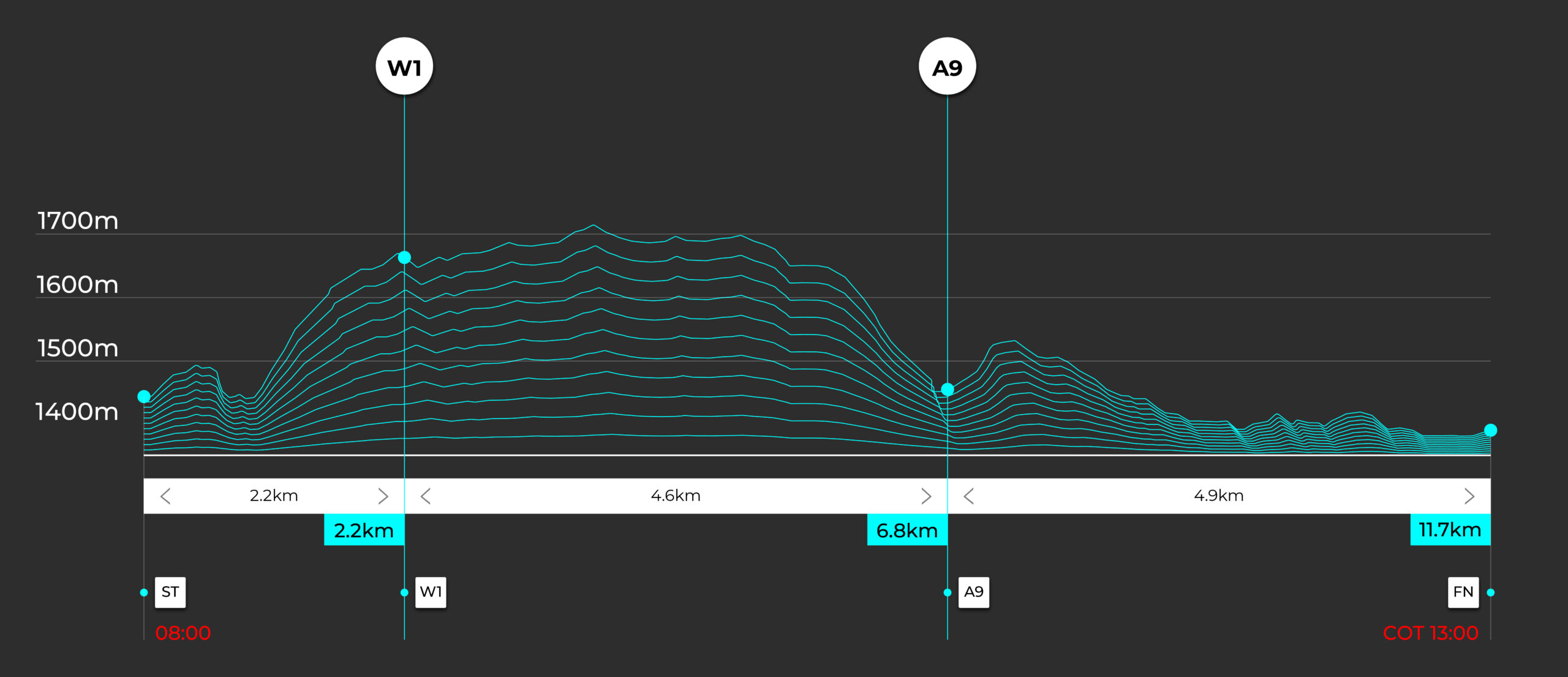 | Lavender Square | 1387 | 11,7 | 4,9 | 120 | 203 | 9:04 | 13:00 | 13:00 | – Aid Station with warm meal – Emergency – WC |