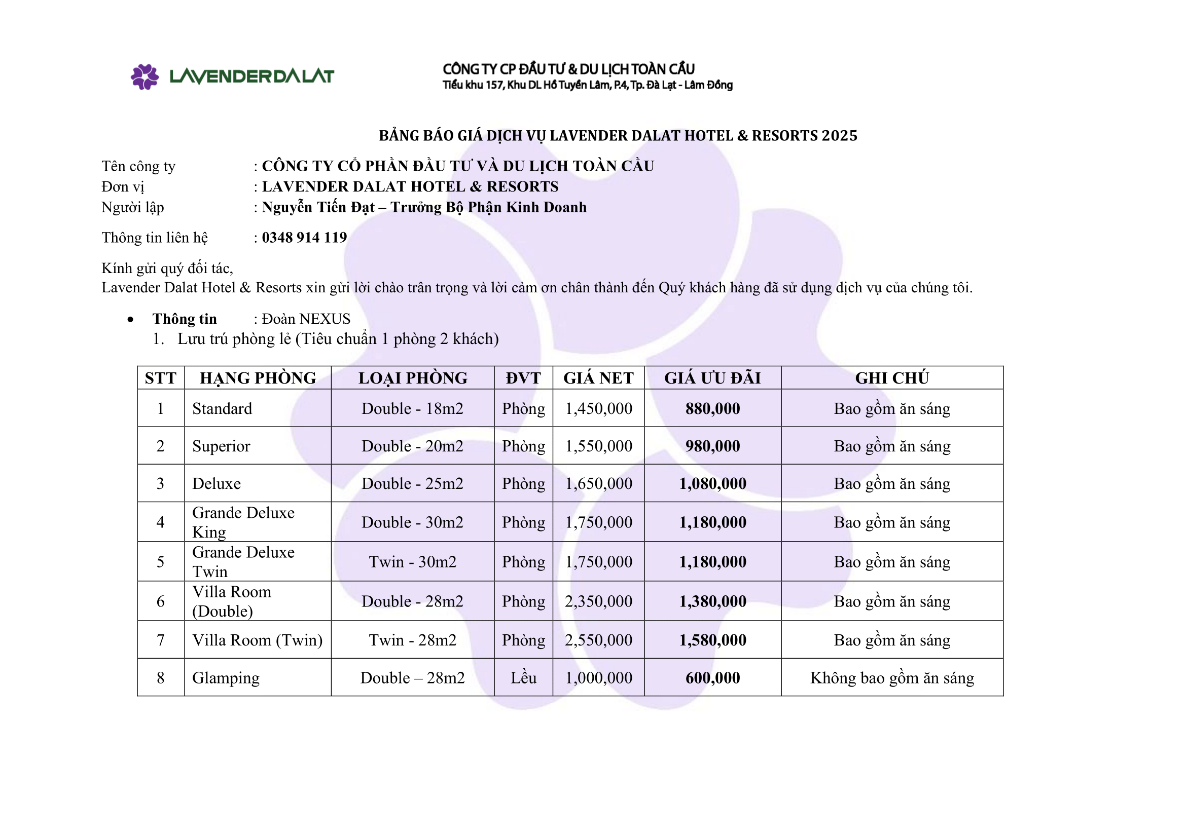 Thông tin liên hệ: https://www.facebook.com/LavenderDalat.Hotel.Resorts